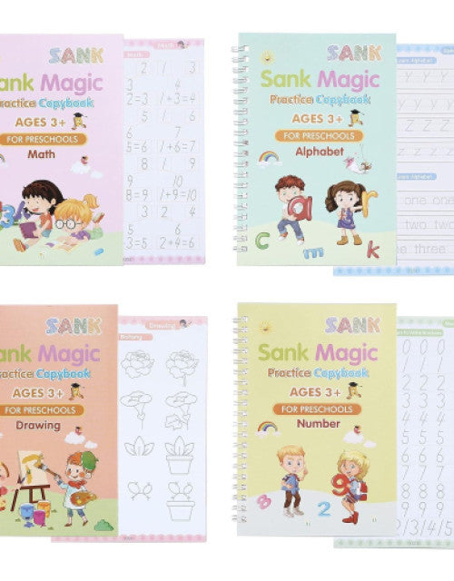 🔷Original SANK MAGIC BOOK 10 REFILL 1 pen GRIP 🌈  / KIDS learning BOOK /shank magic book, Sank magic practice book ( 4 book + 10 refill + 1 pen + 1 grip)