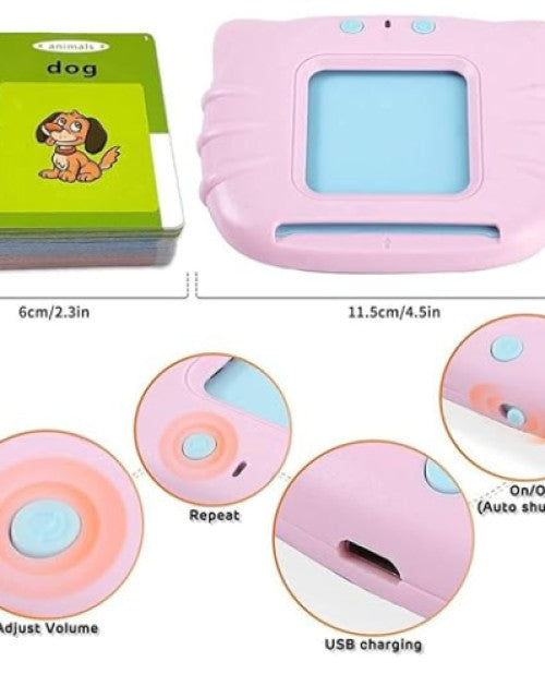 Talking Flash Card Learning Toy – 224 Words & Sounds (USB, Pink)