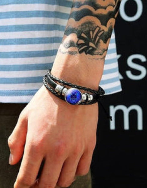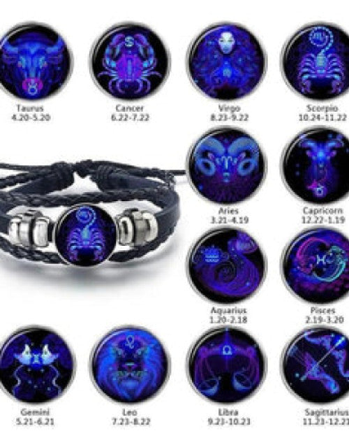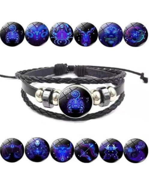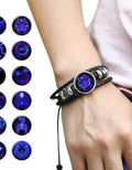Zodiac Constellation Braided Design Black Leather Bracelet Adjustable